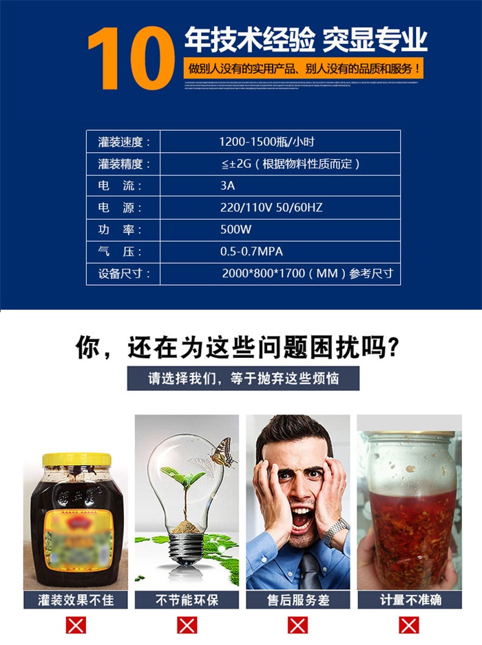 該系列灌裝機采用活塞式氣缸氣動原理,適用于調味品中帶顆粒并且濃度較大的香菇醬、辣椒醬、豆瓣醬、花生醬、芝麻醬、果醬、牛油火鍋底料、紅油火鍋底料等較為粘稠醬類的灌裝。灌裝轉閥可以很具客戶物料定做加大,以適應不同客戶物料的灌裝需求。配備臥式攪拌料斗,限度的保障在灌裝過程中物料均勻、無油醬分離,確保每一瓶的灌裝精確度,該設備在設計上大大縮短了下料斗到灌裝頭的灌裝距離,克服了含油量大的油料(如:含芝麻粒的辣椒油)在灌裝過程出現的有些瓶油多,有些瓶醬多的灌裝誤差大的缺點。