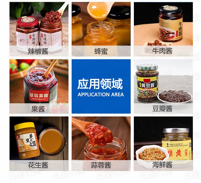 辣椒醬灌裝機采用活塞式灌裝原理,適用于調味品中帶顆粒并且濃度較大的辣椒醬、豆瓣醬、花生醬、香菇醬、果醬、牛油火鍋底料、紅油火鍋底料、蝦醬等較為粘稠醬類的灌裝。
